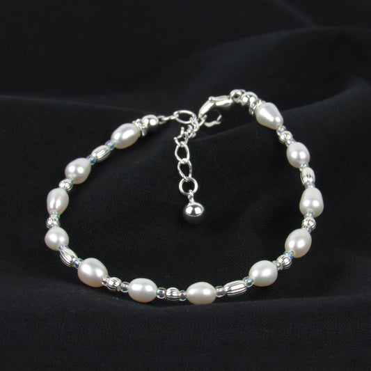 Tiny Moonstone and Freshwater Pearl Bracelet