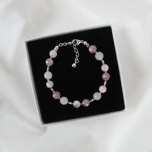 Pulsera de Piedras Preciosas Rosa con Kunzita y Cuarzo Rosa