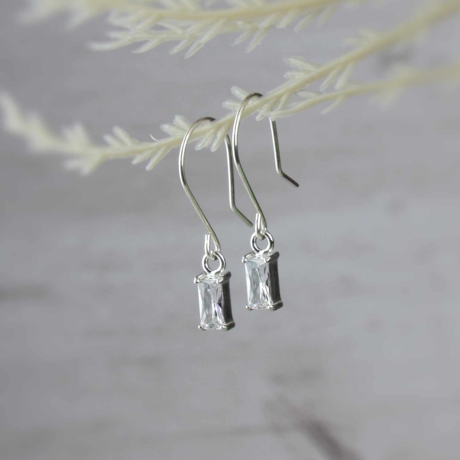 Tiny Baguette Bar Earrings Dangle