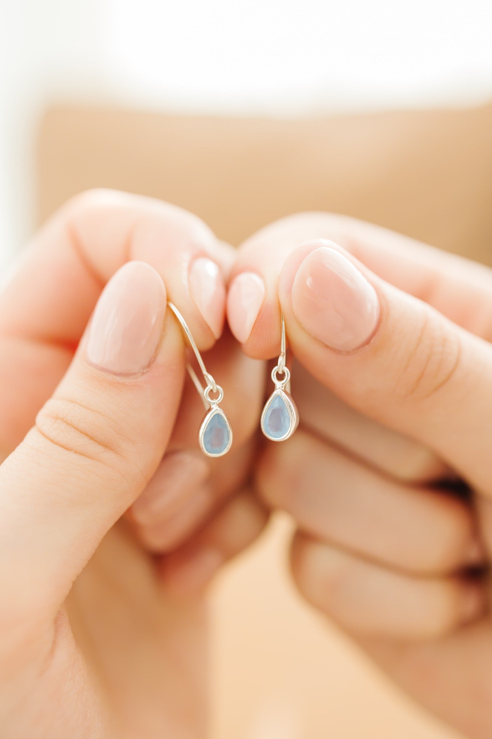 Tiny Blue Chalcedony Teardrop Earrings