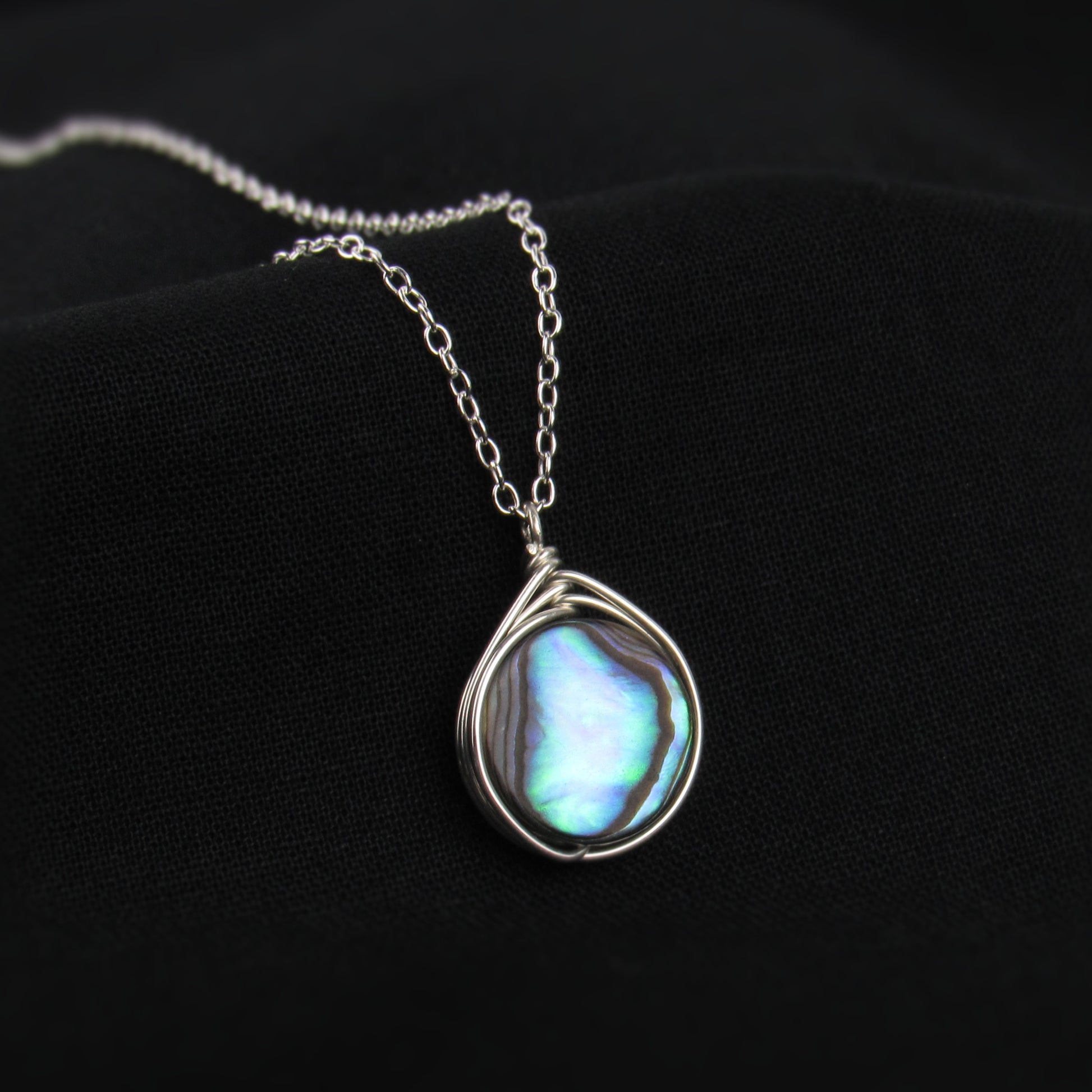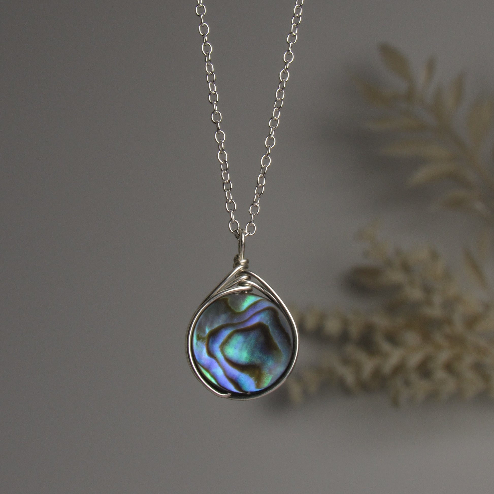 Abalone is one of the most beautiful shells in the ocean. That's why we wrapped these gorgeous shells in quality sterling silver for a perfect pendant. This necklace is 16 inches in length and sits just below the collar bone on most.