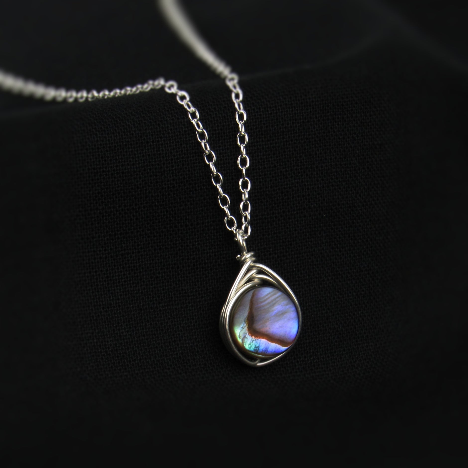 Abalone is one of the most beautiful shells in the ocean. That's why we wrapped these gorgeous shells in quality sterling silver for a perfect pendant. This necklace is 16 inches in length and sits just below the collar bone on most.