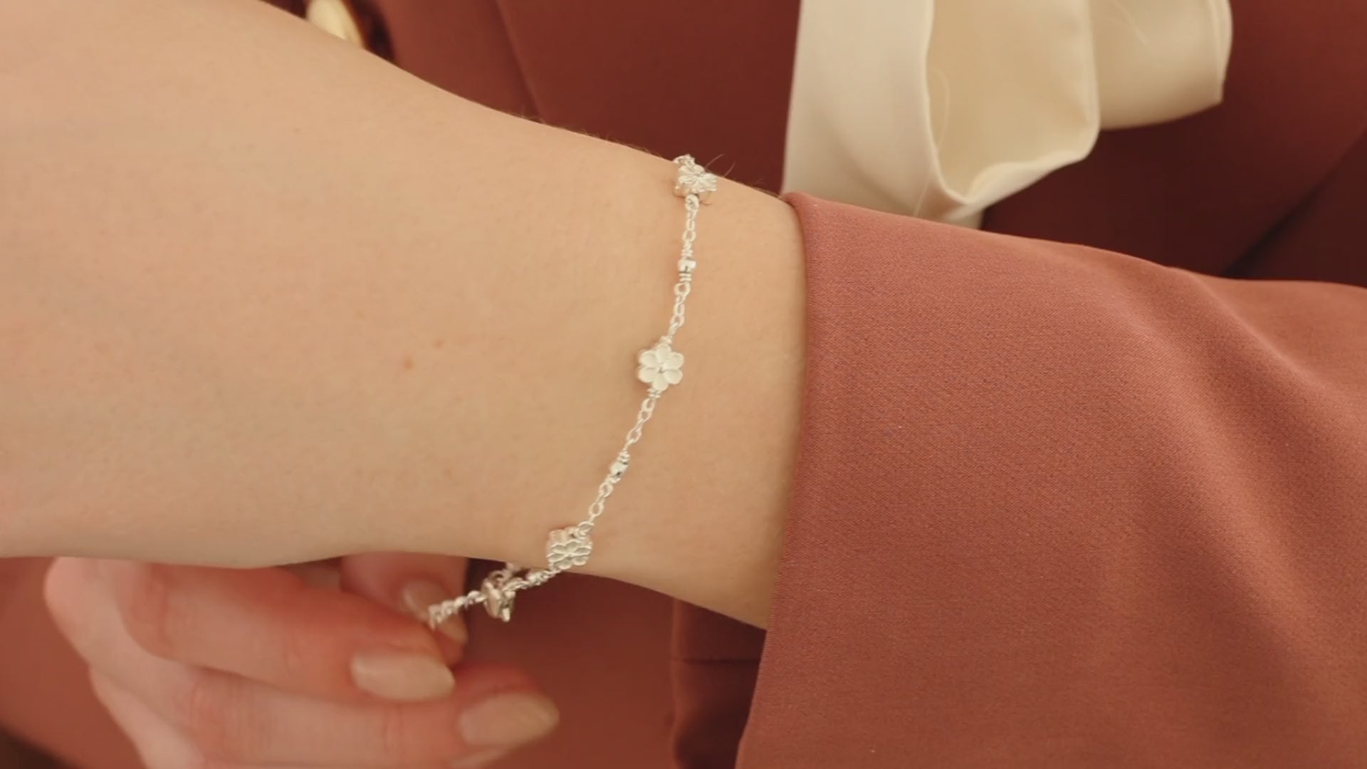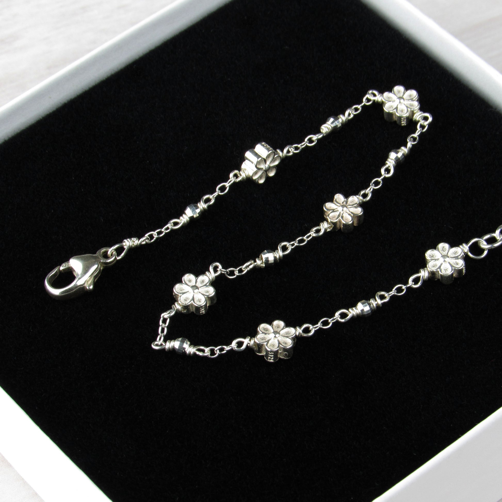 You'll love the detailed flower beads paired with the daintiest of sterling silver spacers. We've carefully wire wrapped each bead in this very intricate piece. A quality gift and heirloom bracelet made from 100% sterling silver.