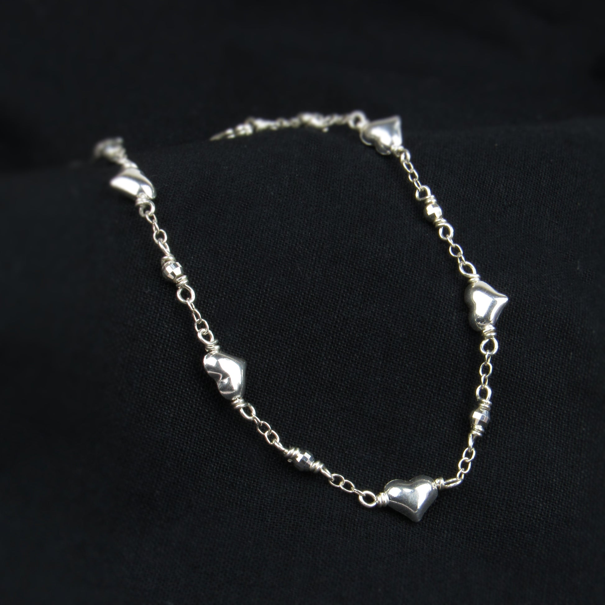 Dainty and very elegant, this bracelet makes the perfect gift for any occasion. You'll love the shiny heart beads and touch of sparkle from each faceted spacer. Add this bracelet to any outfit for a classy and elegant touch.