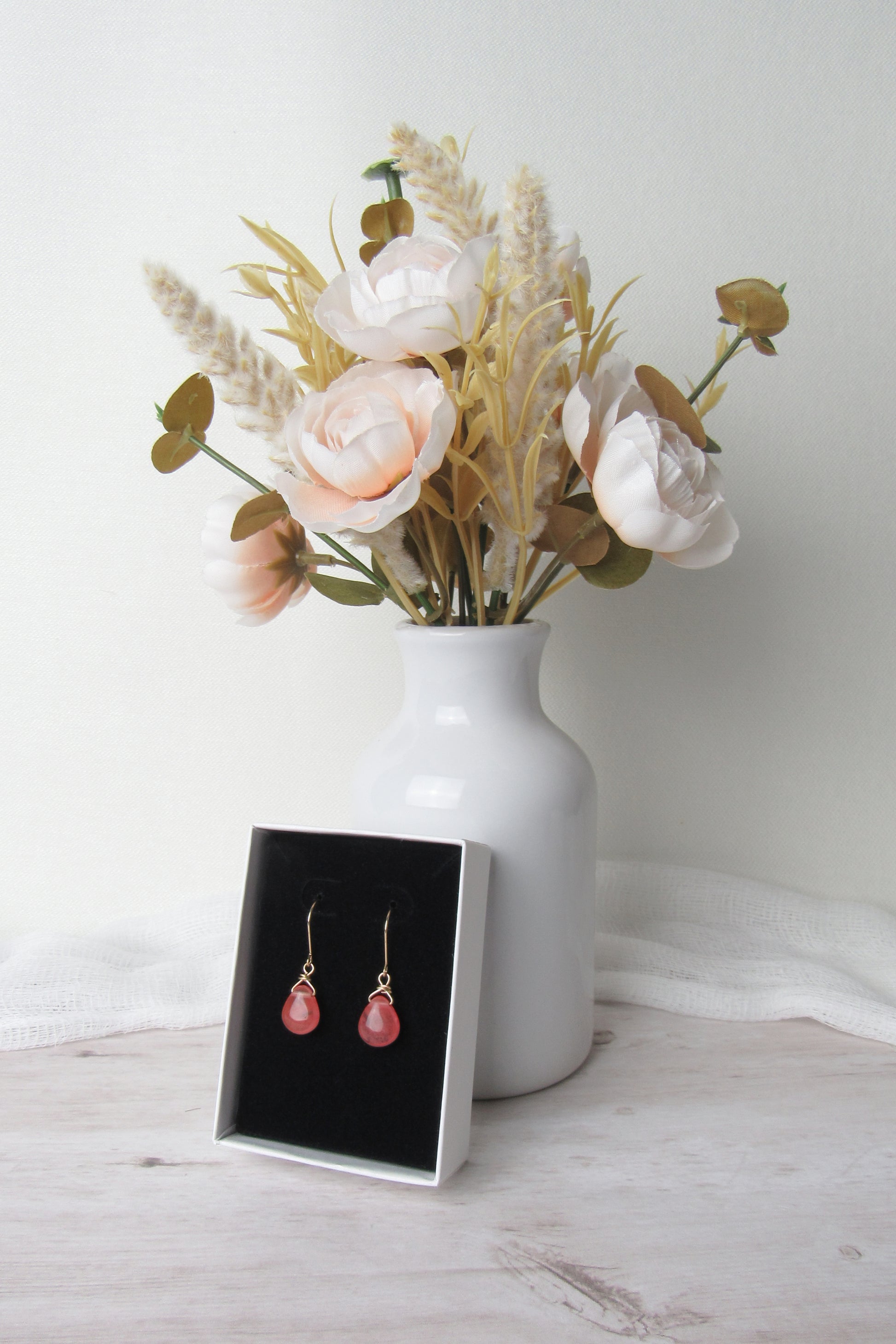 Who doesn't love the bright and bold color of cherry quartz? These earrings showcase beautiful stones and we've wrapped them in an excellent quality, 14k gold filled wire. A perfect and quality gift!