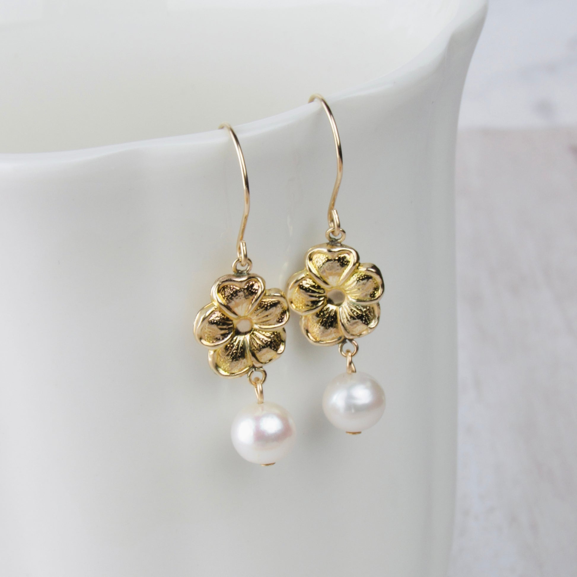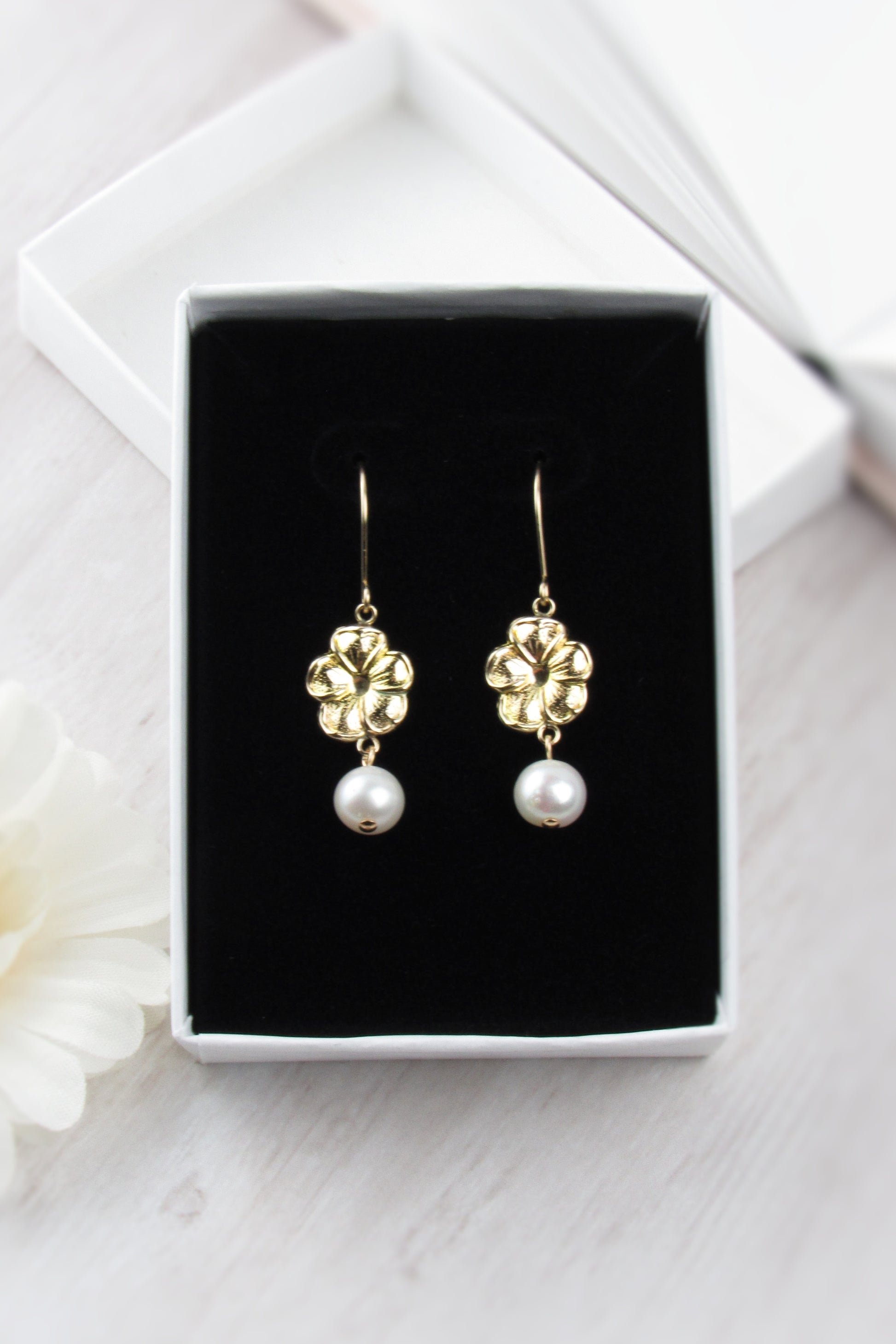 You don't want to miss these elegant floral pearl earrings! Each flower has beautiful detail and pairs perfectly with a freshwater pearl. This is a timeless design and makes a gift for women of all ages.