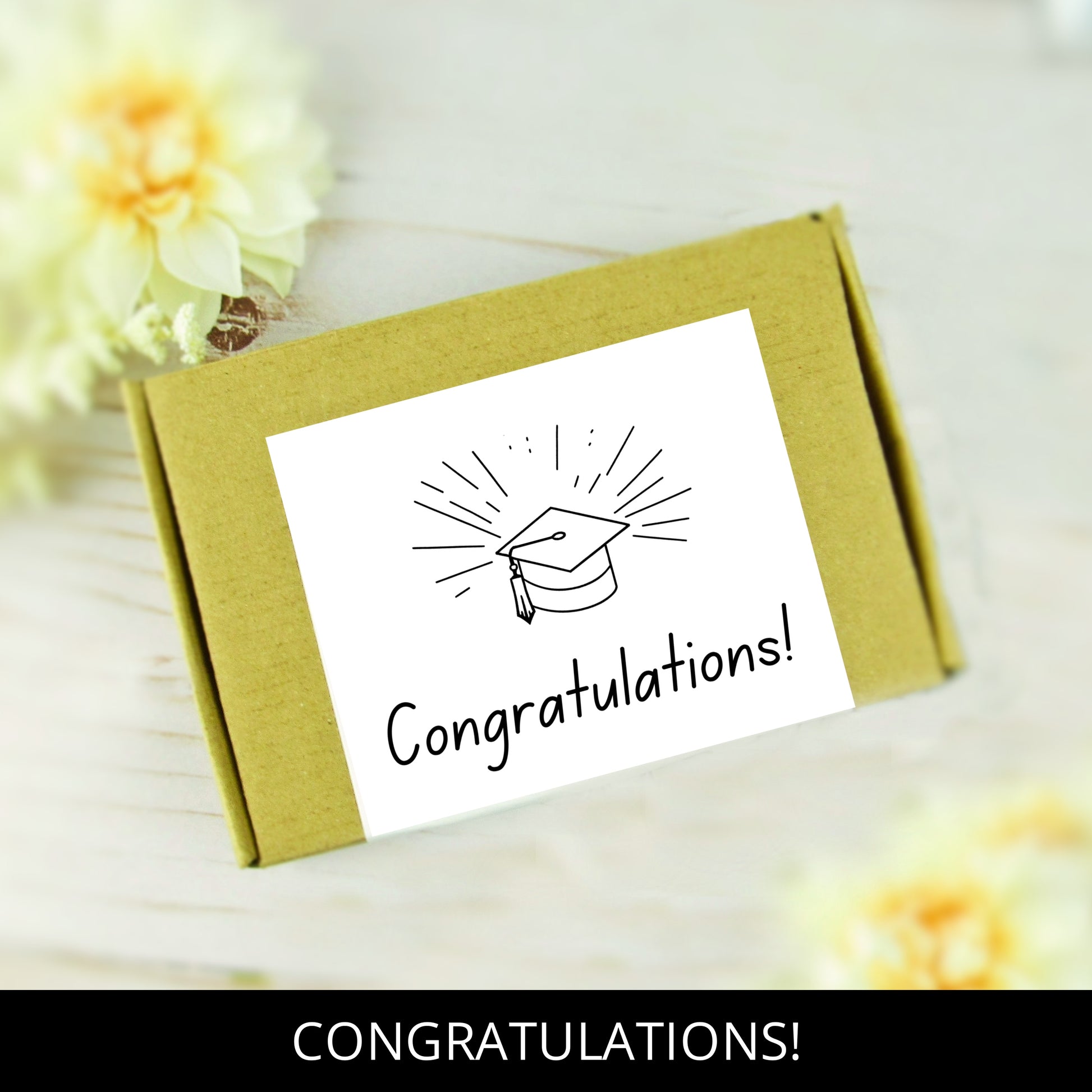 - Custom sticker on gift box with text "CONGRATULATIONS!"