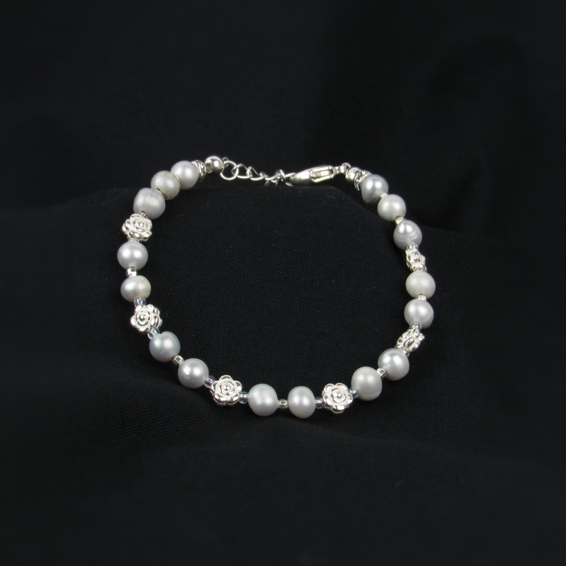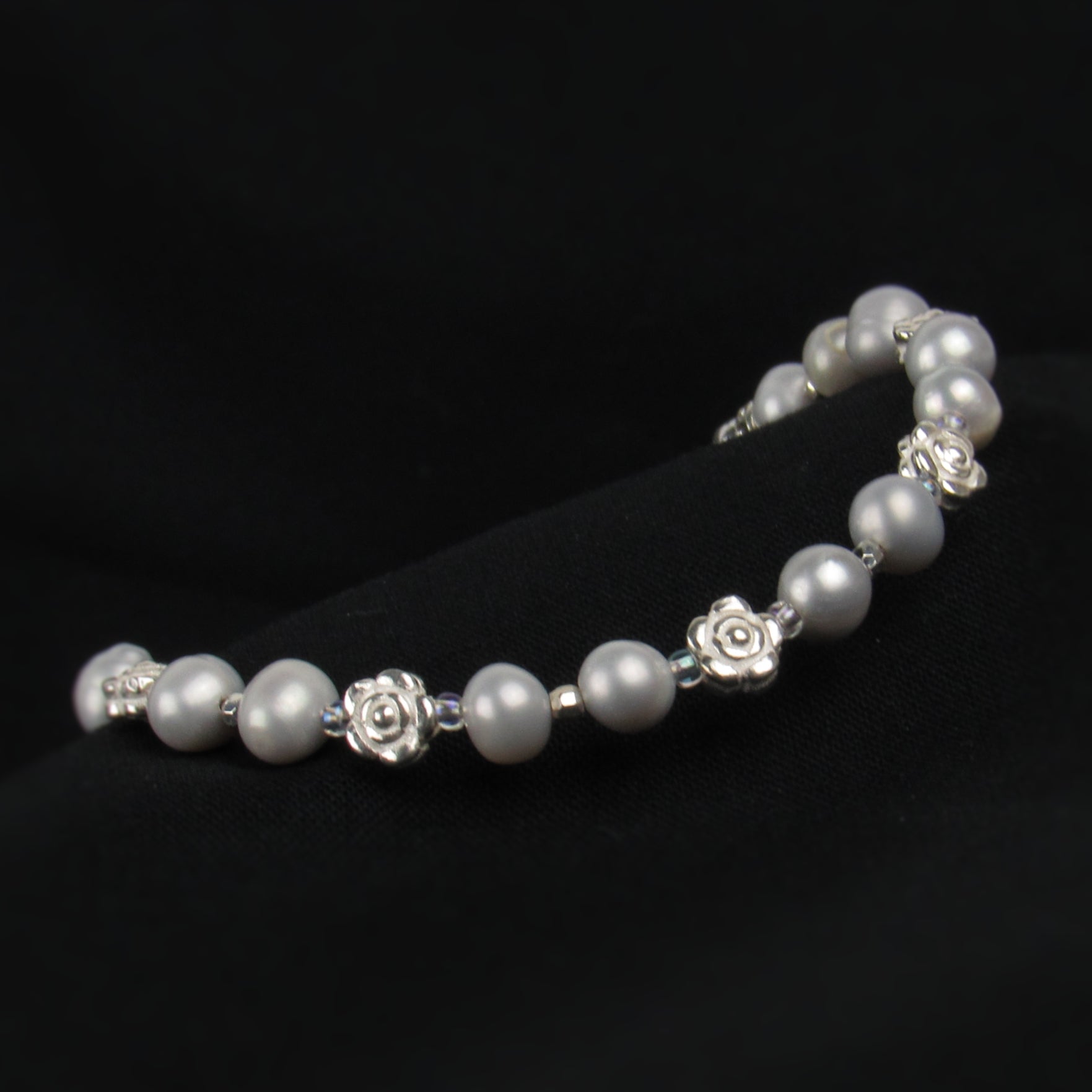 A favorite design at Rosa Perlina! This beaded bracelet is a must for your collection. You'll love the mix of pearls and detailed sterling rose beads. This bracelet is great for brides or special occasions!