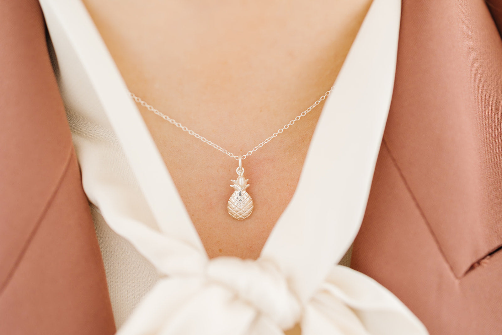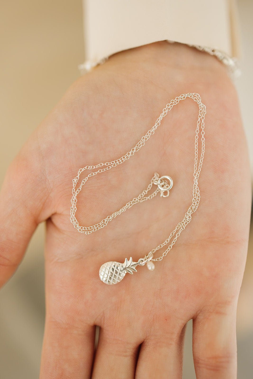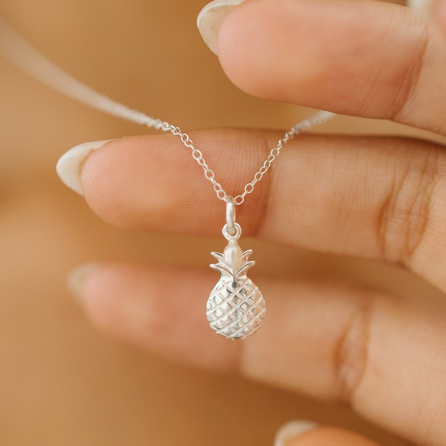 Dress up your outfit with our dainty pineapple necklace. You'll love the tiny pearl charm that makes this pendant unique. A perfect gift for a beach lover!