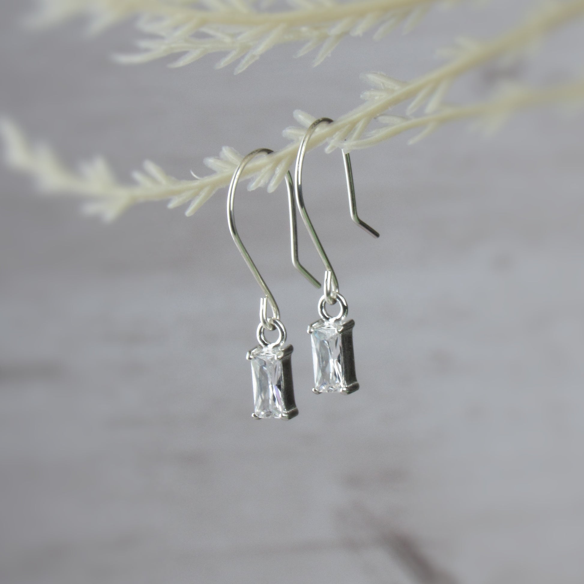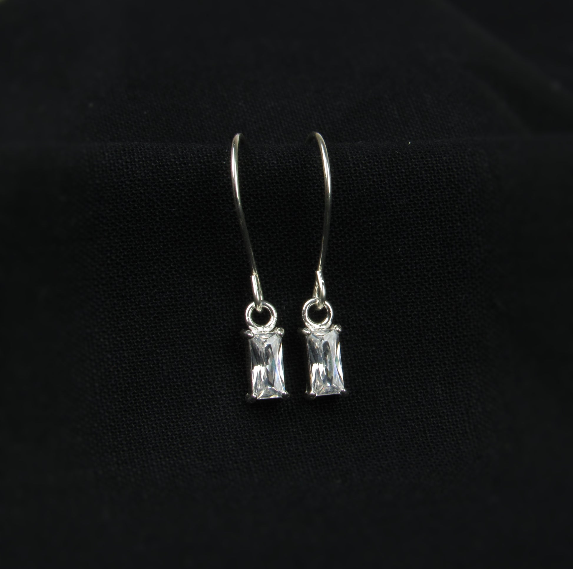 For those who want just a hint of sparkle! These very petite (3mm by 8mm) baguettes are perfect for your minimalist jewelry collection. Super lightweight these earrings are comfortable all day and can easily be dressed up or down in any outfit.