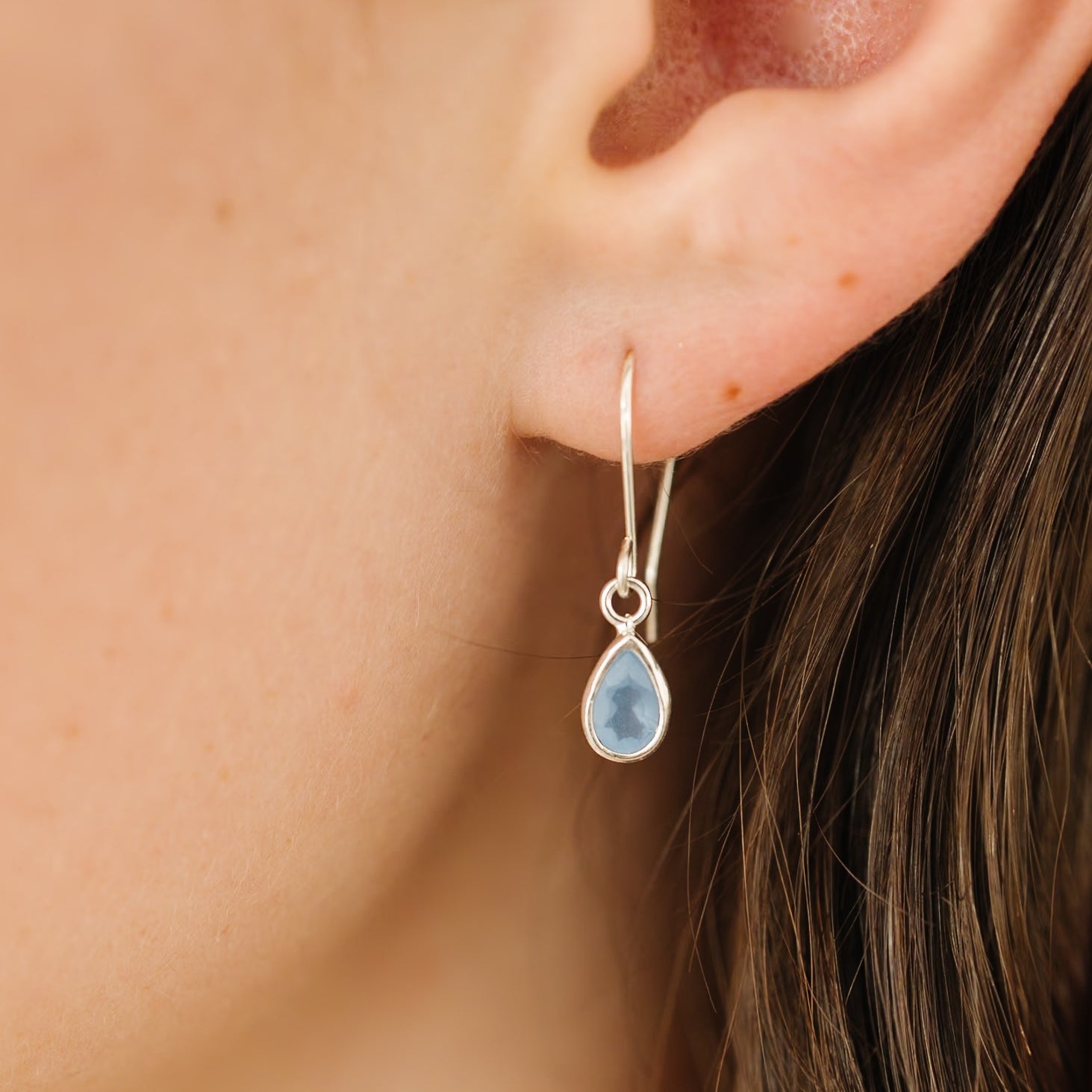 For women of all ages these versatile and very dainty earrings are a great addition to elevate your outfit. Please note the size of the tiny stones. The stones are light blue and can be lighter or darker depending on the light.