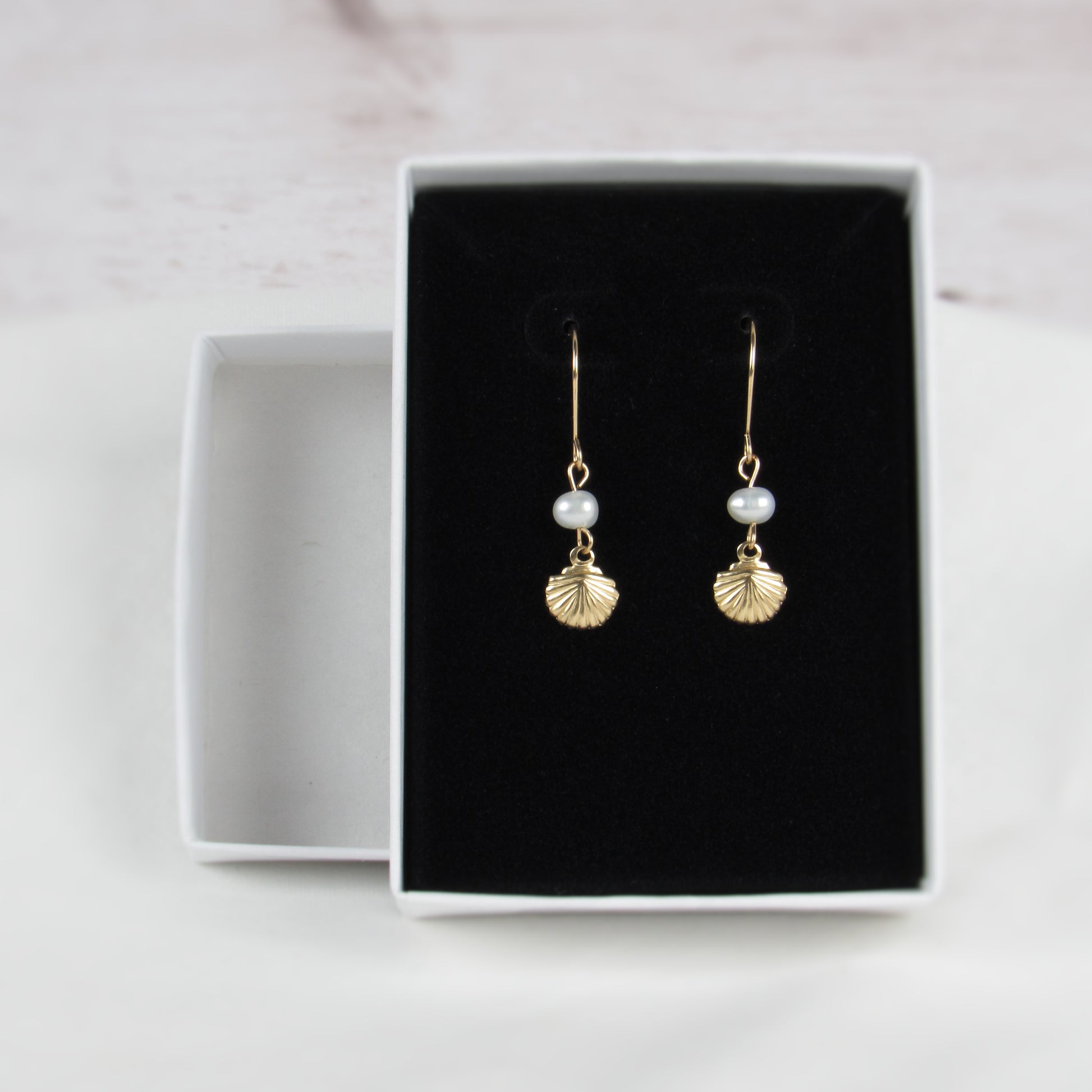 Who doesn't love pearls and seashells? These earrings combine the best of both worlds. You'll love the tiny shell charm and delicate freshwater pearl. A perfect gift for ocean lovers!