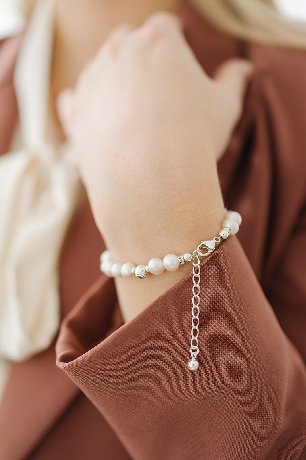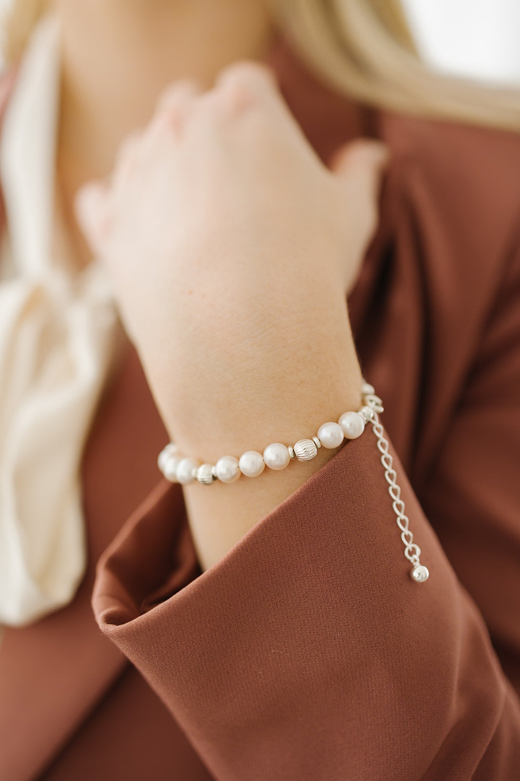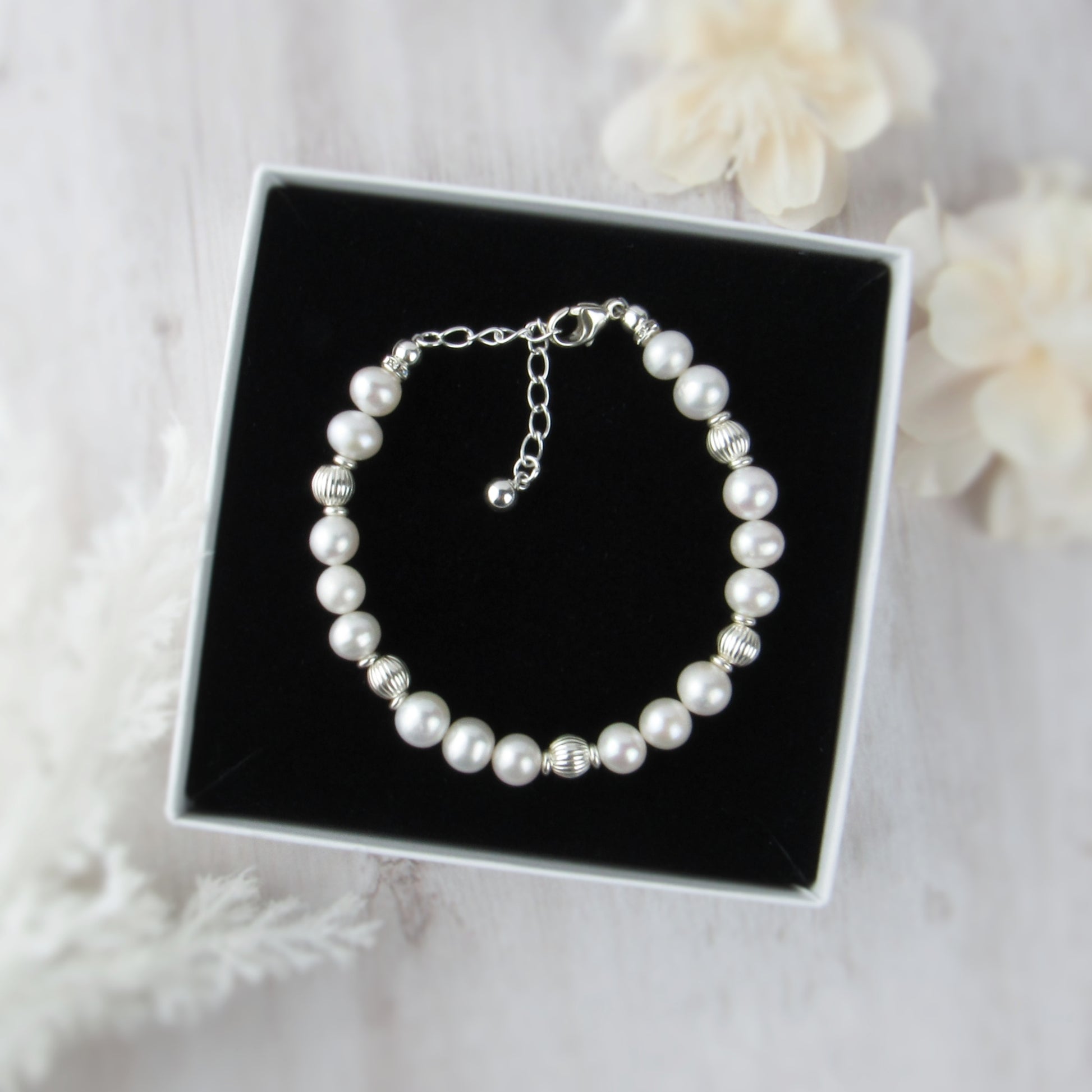 Ideal for brides or any women who loves a classic pearl bracelet. The 6-7mm pearls are paired with beautiful sterling silver beads for an elegant look. Add this bracelet to your outfit for any special occasion.